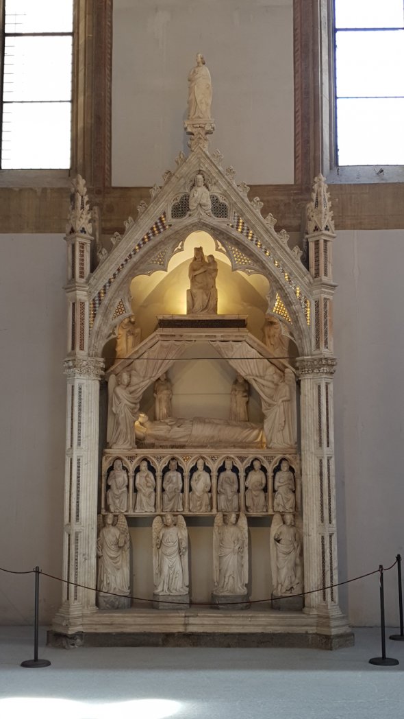 Mária királyné ebbe az apácaközösségbe vonult vissza férje 1309-ben bekövetkezett halála után és itt is hunyt el 1323. március 25-én hatvanhat éves korában. Végakaratának megfelelően a támogatásával épített templomban temették el. Síremlékét 1325-re készítette el a sienai Tino di Camaino szobrász és Garliardo Primario nápolyi építész-szobrász.
